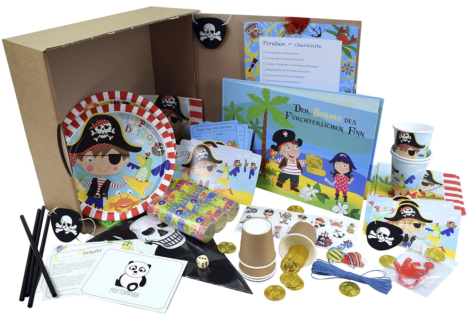 Wir haben diese Partykiste für eine Piratenparty ausprobiert und ich empfehle sie wirklich gern weiter. Hier hatte ich damals etwas dazu gebloggt. Es ist nicht nur alles zum Spielen dabei, sondern auch Einladungskarten, die Partydeko, die Tischdekoration sowie ein bisschen Verkleidung für jedes Kind. Da ist der zunächst hoch erscheinende Preis schon wieder relativiert. Von dem Buch und den vielen Spielideen hat man auch an den kommenden Geburtstagen noch etwas.
